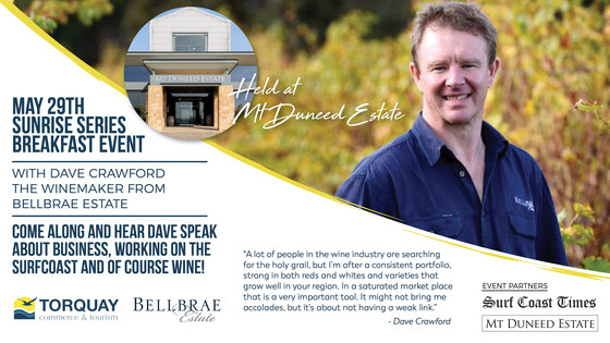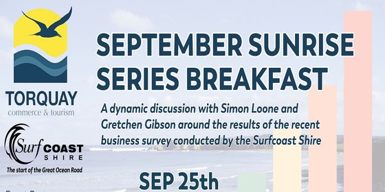 The SUNRISE SERIES EVENTS exist to provide an environment for local business owners to connect, form relationships, be inspired and educated on different subjects by leaders in their industries. Come and JOIN US for a delicious breakfast, great speaker and fantastic networking opportunities! If you are a current Torquay Commerce and Tourism member it is $30 to come along. If you aren't a member yet, no problem! You are still welcome to join us for $45 per person. Please book using the link below whether you are a member or not (we don't want to run out of breakfast!) We are being hosted by Mt Duneed Estate for the morning, and are looking forward to a great morning with all our local businesses. Please remember to bring along your cards AND your questions! See you there P.S. If you are not a member, please head across to: http://www.torquaycommerce.com.au/membership to join - it's just $66 per year if your business has 3 or less employees or $132 if your business has over 3 employees.