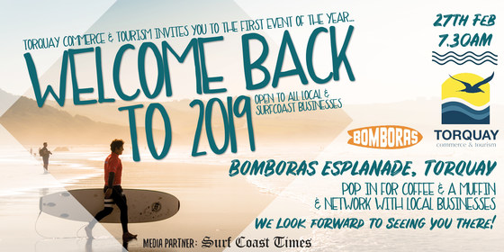 Torquay Commerce & Tourism invite you to the first event of 2019. Open to ALL Local & Surf Coast businesses. Pop in for Coffee and a Muffin and network with local businesses. We look forward to seeing you there!